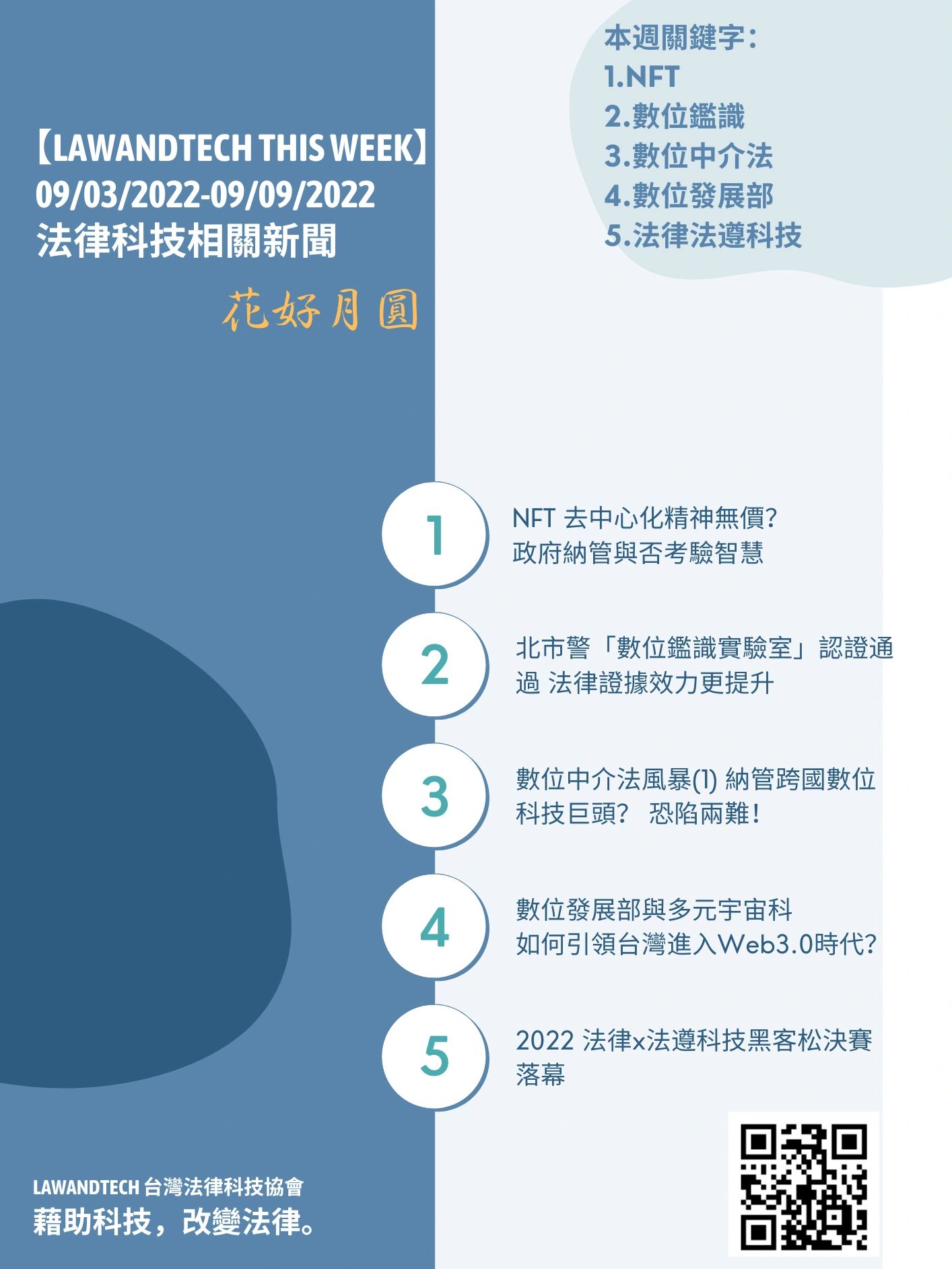 關鍵字:#NFT、#數位鑑識、#數位中介法、#數位發展部、#法律法遵科技