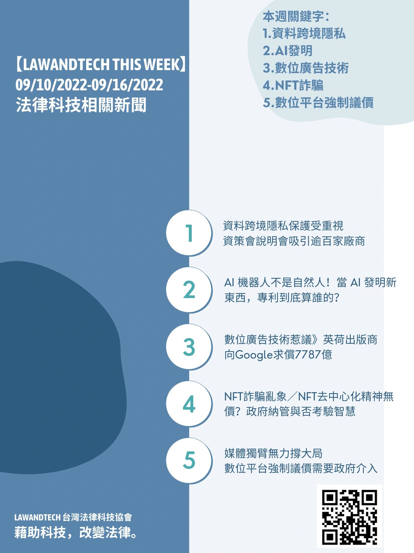 關鍵字:#資料跨境隱私、#AI發明、#數位廣告技術、#NFT詐騙、#數位平台強制議價