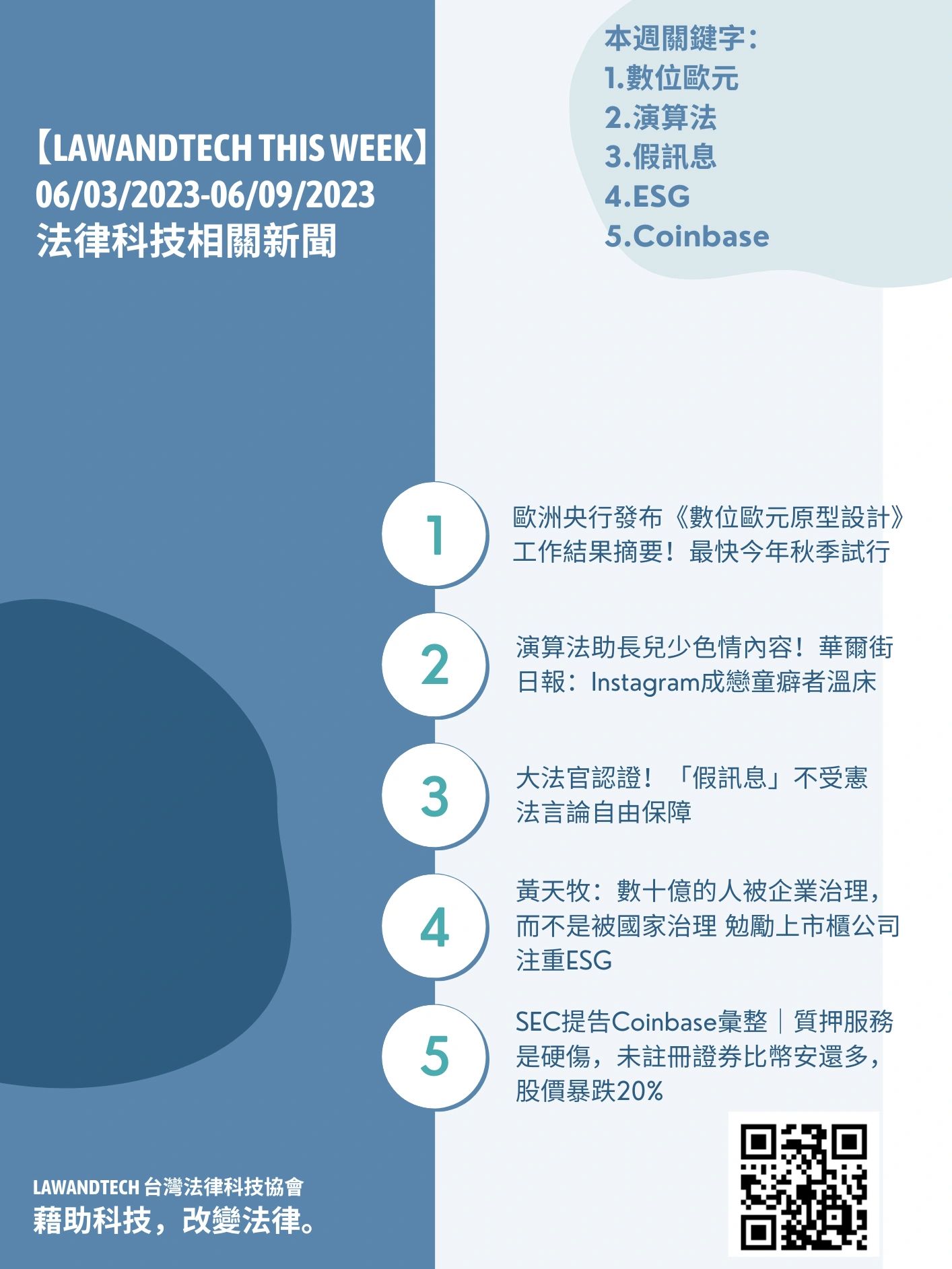 關鍵字:#數位歐元 、#演算法、#假訊息、#ESG、#Coinbase