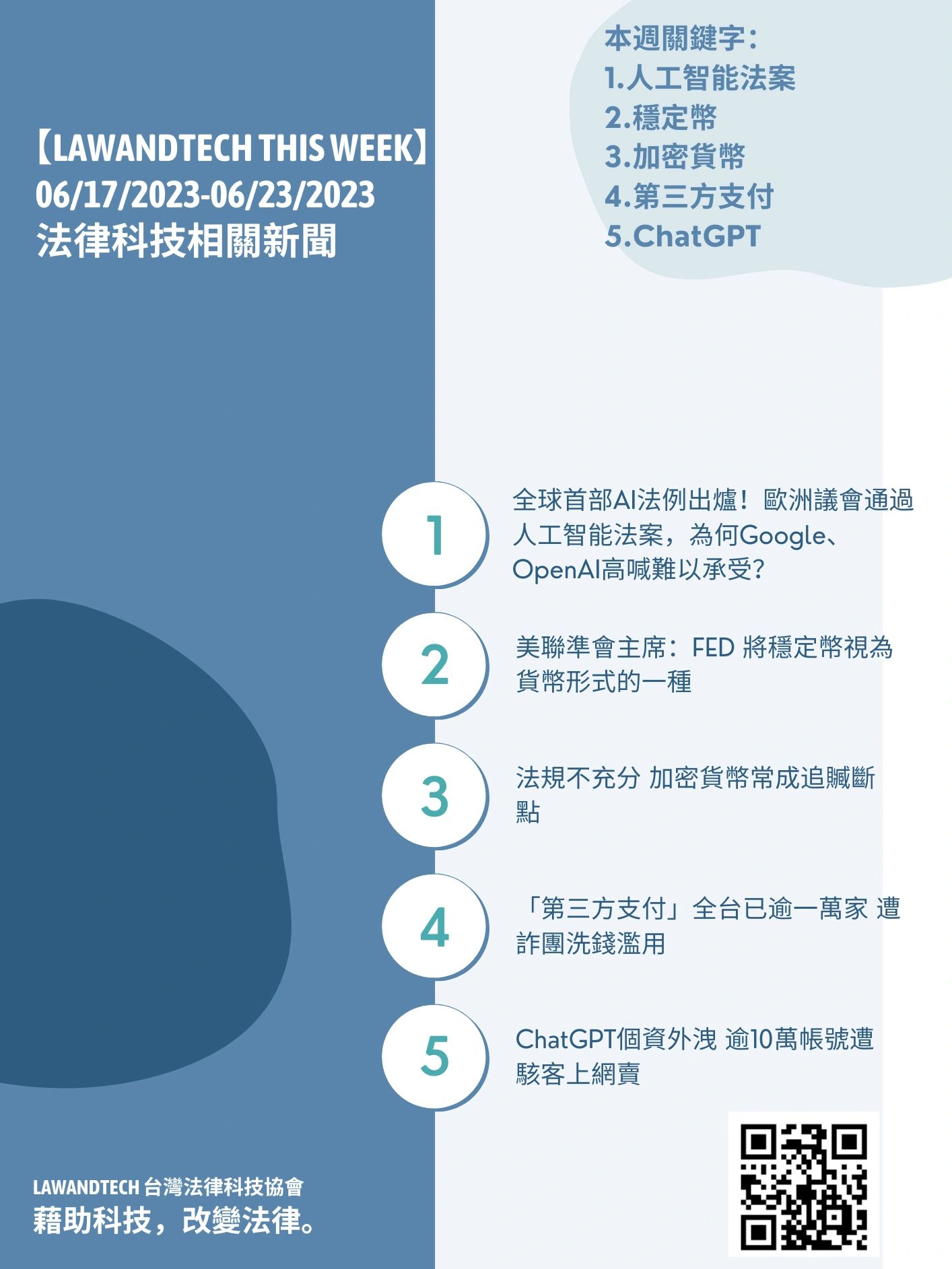 關鍵字:#人工智能法案、#穩定幣、#加密貨幣、#第三方支付、#ChatGPT